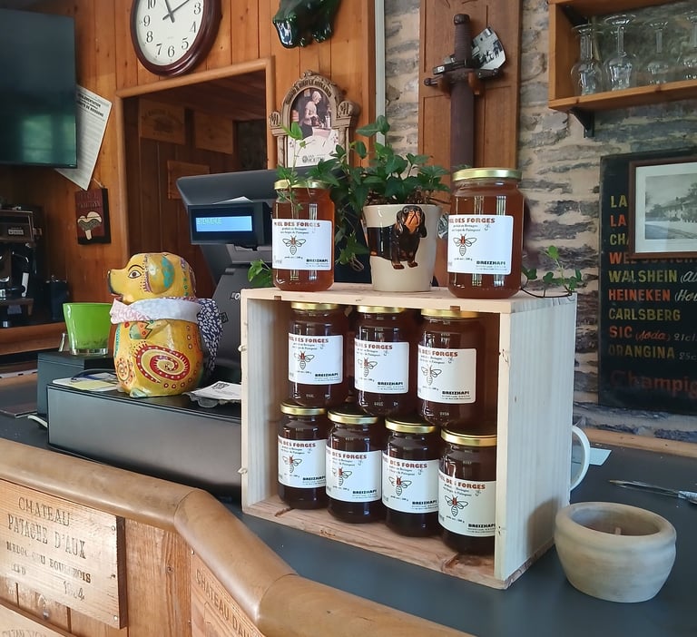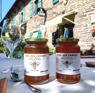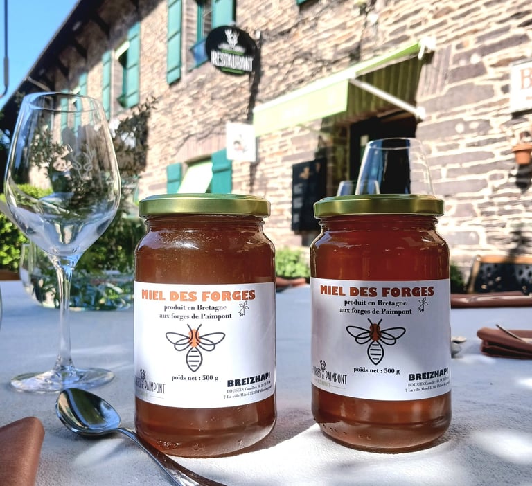 provenant d'un rucher situé sur le magnifique site des forges de Paimpont et vendu en exclusivité au restaurant des forges .