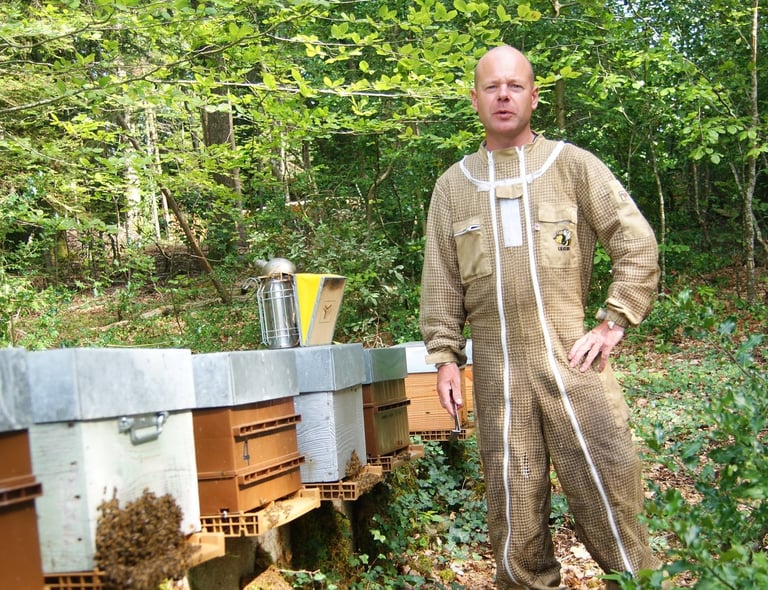 Je produit du miel et autres produits dérivés de façon artisanal sur le massif de Brocéliande, mes ruchers sont placés en lisiére de foret sans cultures intensive à proximité ou sur une exploitation floricole certifié biologique.